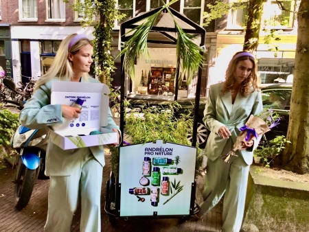 Tijdens de redactie- en influencertour reed de bloemenbakfiets samen met ons promoteam rond ter lancering van Andrélon Pro Nature. Met echte bloemen, frisse kleuren en natuurlijke details trok de bakfiets direct de aandacht en bracht het team de merkbeleving letterlijk de straat op. De bloemenbakfiets is een stijlvolle en duurzame eyecatcher die zorgt voor zichtbaarheid, interactie en een positieve merkassociatie.