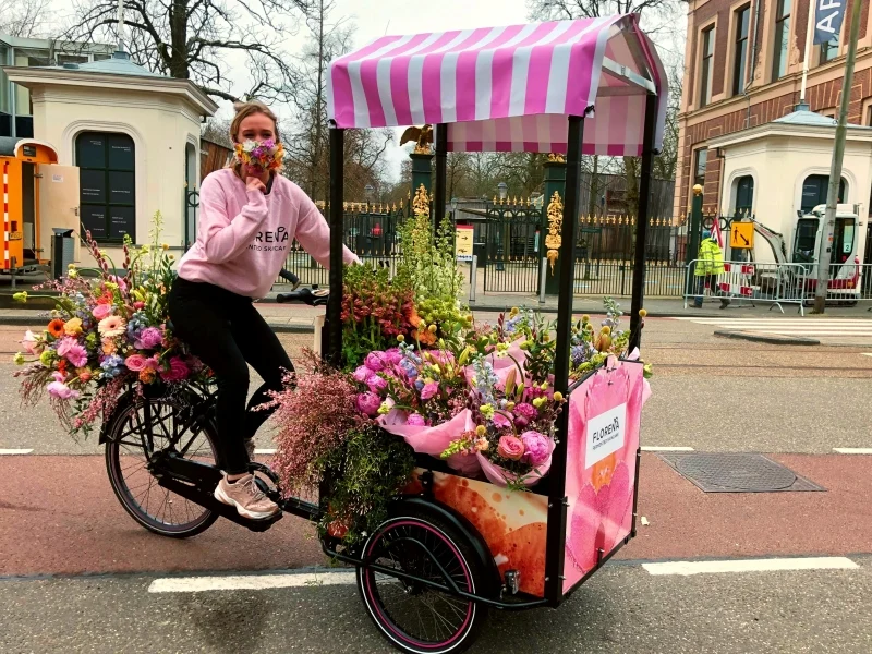 Een unieke bloemenbakfiets die direct de aandacht trekt voor jouw campagne. Met opvallende kleuren, natuurlijke details en echte bloemen zorgt deze bakfiets voor een frisse en positieve merkbeleving op straat.